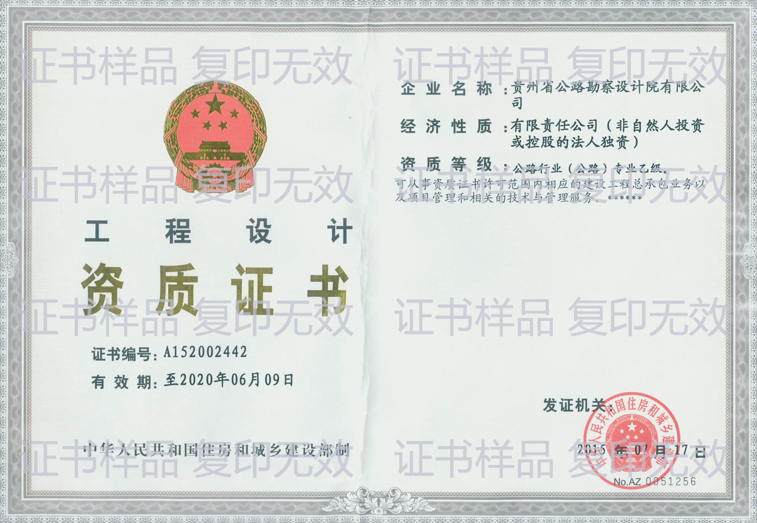 工程設(shè)計(jì)證書(編號(hào)2442)